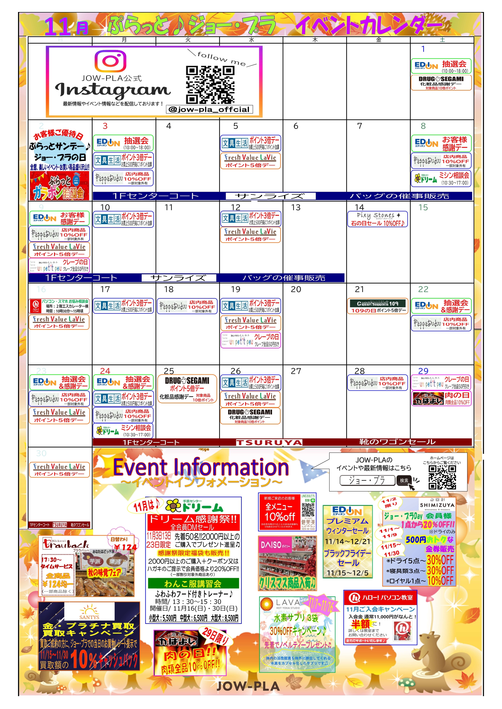 11月の『ぷらっとジョー・プラ♪イベントカレンダー』が完成しました!