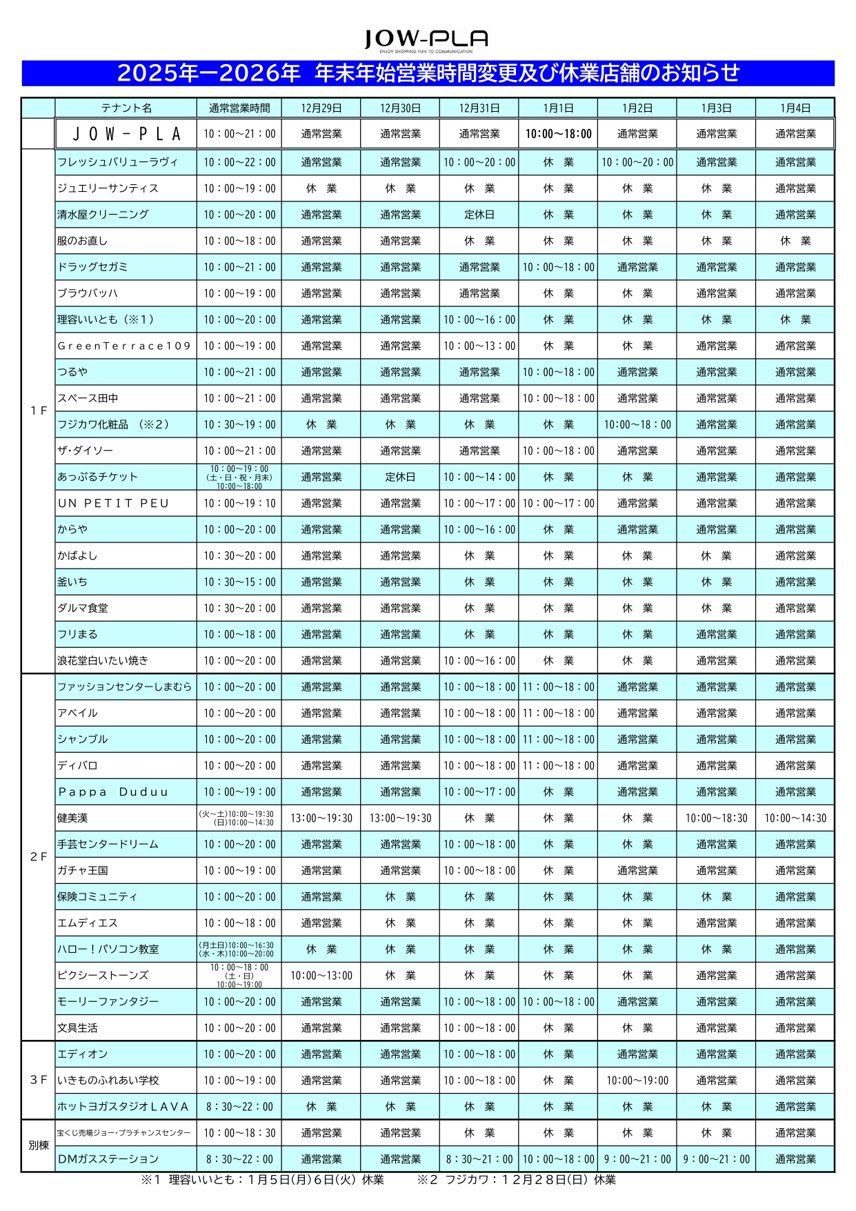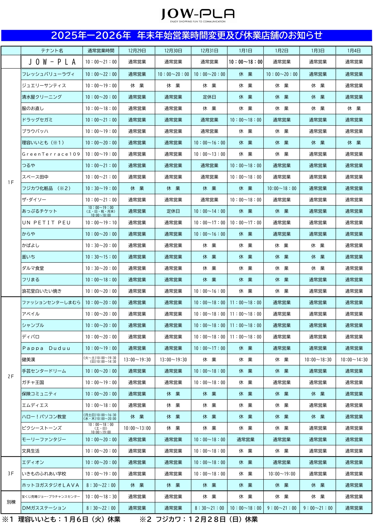 ただし、年末年始期間中は、一部店舗において営業時間の変更や休業日がございます。