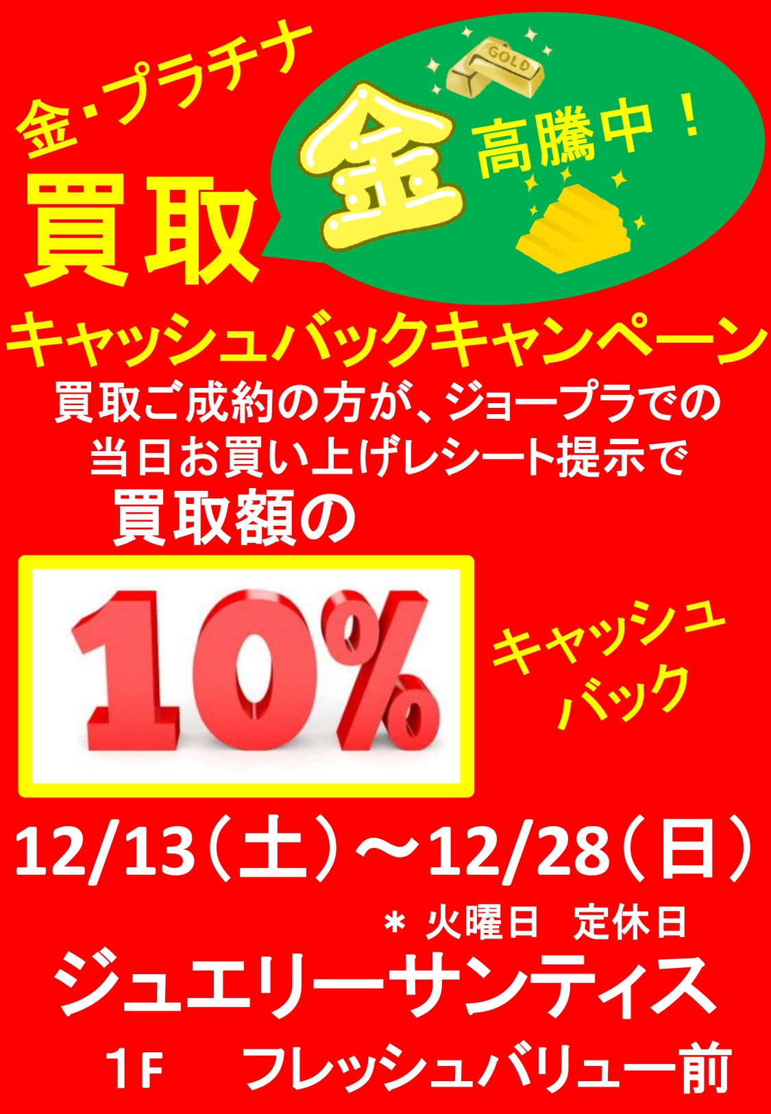 金・プラチナ買取キャッシュバックキャンペーンを実施いたします。
