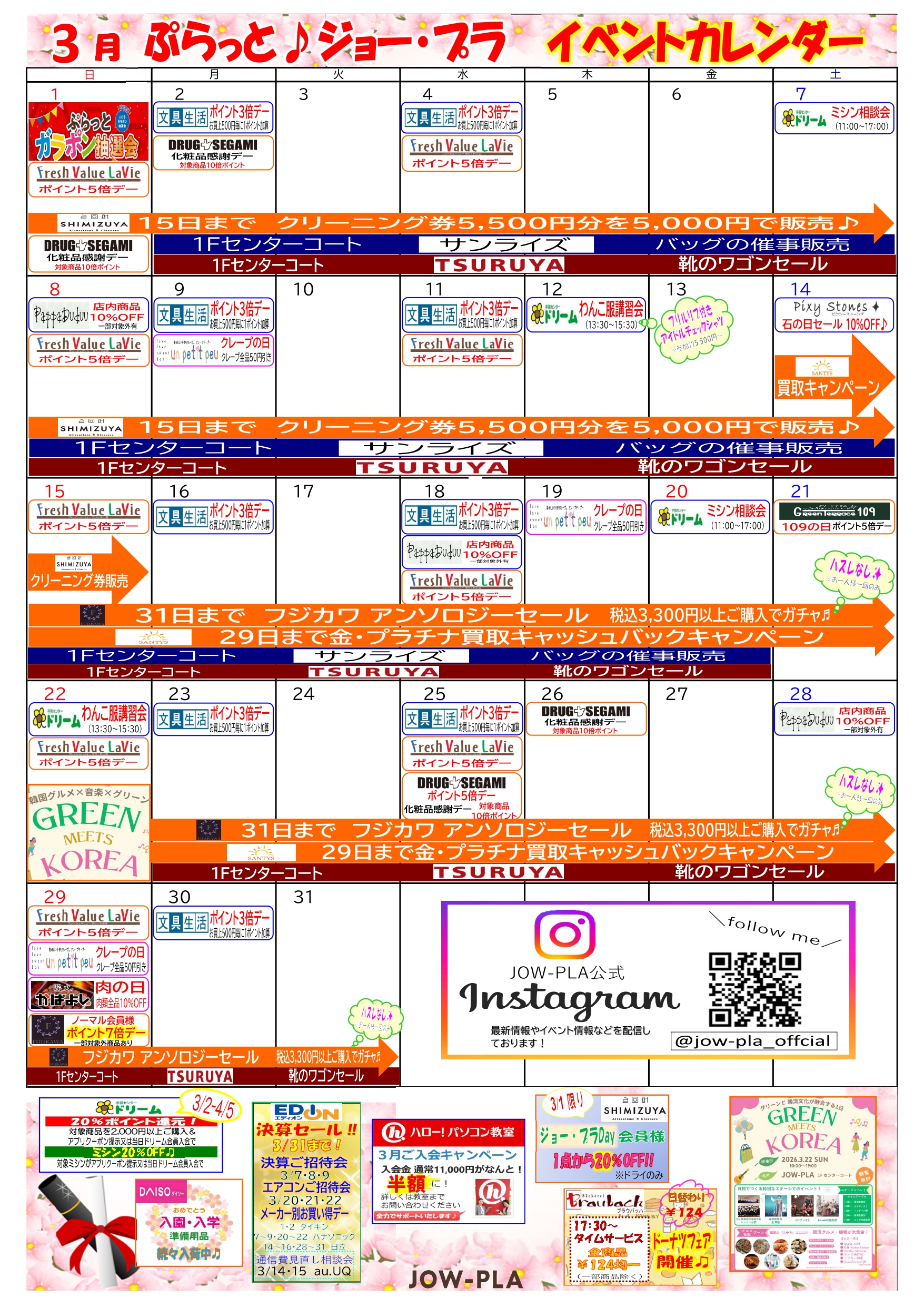 ジョー・プラの3月のイベントカレンダーを公開いたしました。
